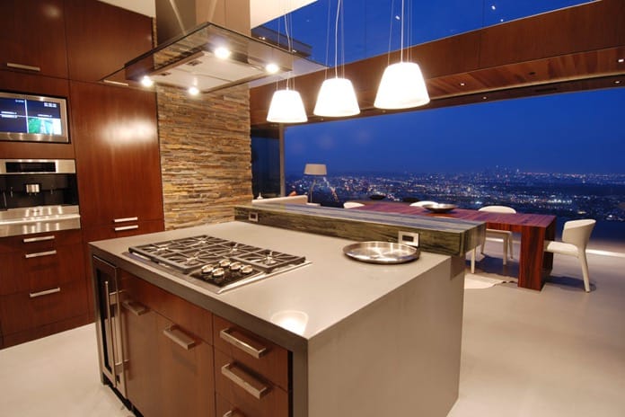 No es la séptima maravilla arquitectónica, tampoco se puede decir que sea muy original, y mucho menos que sea un ejemplo de vivienda sostenible, más bien todo lo contrario. Pero esa barandilla invisible de vidrio en el borde de toda la terraza es sin lugar a dudas la mejor forma de disfrutar de unas vistas maravillosas sobre la ciudad de Los Ángeles.
