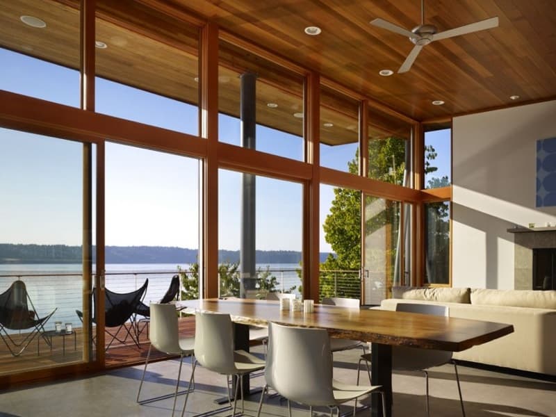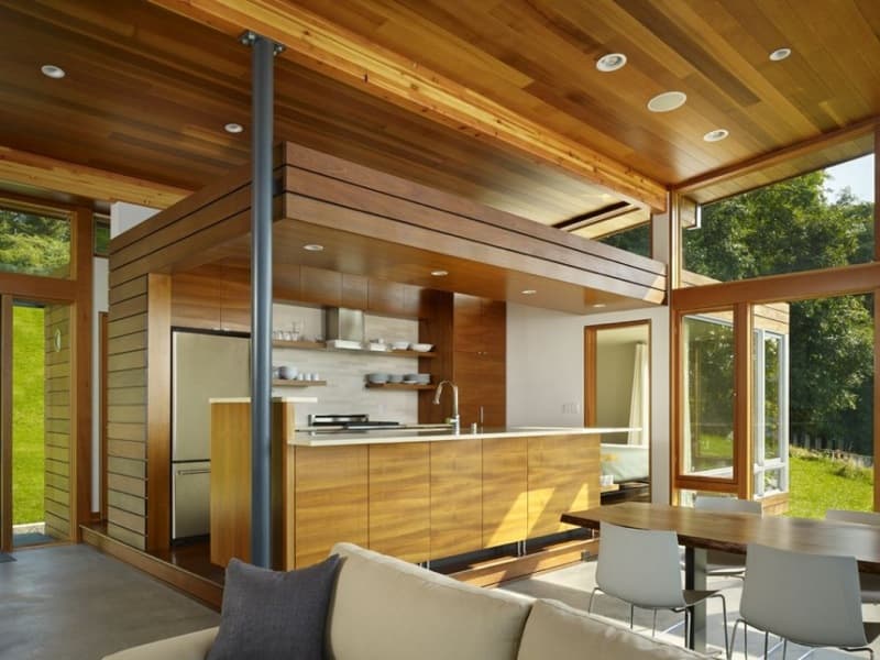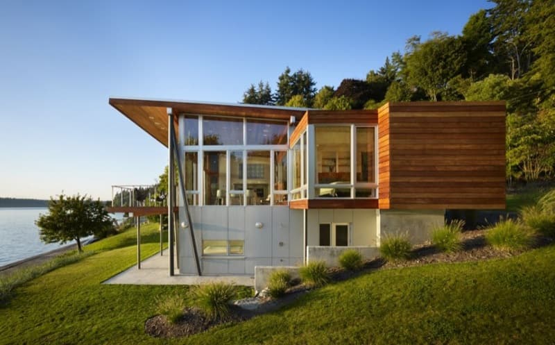 Este post está dedicado a Vashon Cabin, ubicada en un hermoso lugar de Vashon Island (Estado de Washington). El proyecto consistió en una remodelación de un edificio existente en el que los clientes querían una completa reorganización de la planta baja. Por eso se demolió toda la estructura superior, y añadió luego una ‘caja de madera’ que contiene el dormitorio principal, baño, cocina, y sala. La planta inferior contiene otra sala, dos dormitorios, y otro cuarto de baño.
