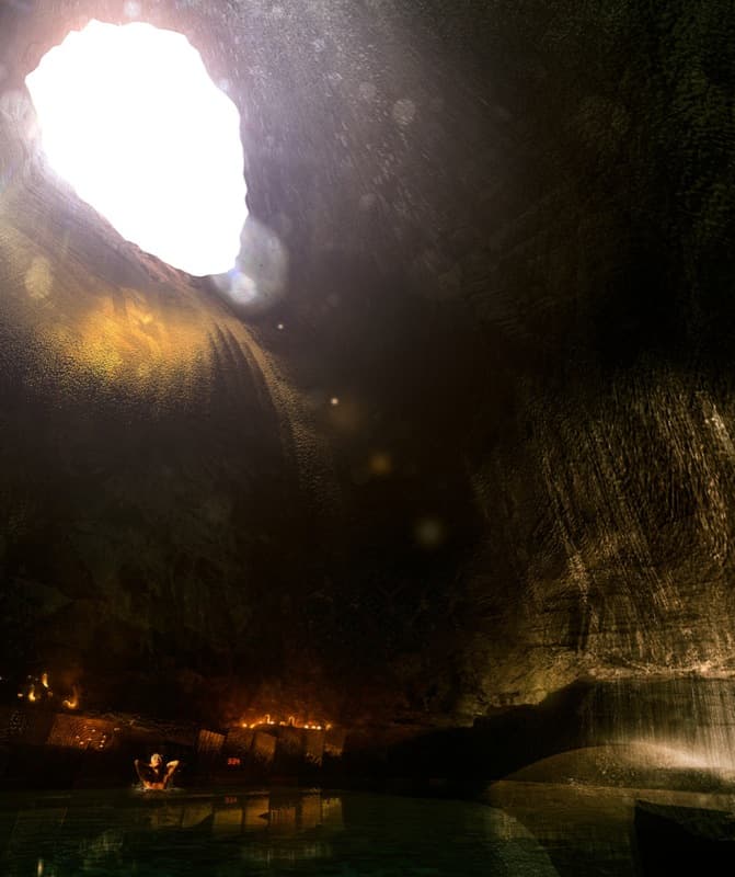 El principal objetivo del hotel es proporcionar unas lujosas y confortables habitaciones, sin apenas alterar el lugar. El proyecto se adapta a la geometría del sitio, y proporciona una perfecta conexión entre los huéspedes y la naturaleza. Es una arquitectura creada en la memoria de la historia geológica de las rocas. Por eso dispone de salas con geometrías bastante puras, labradas en la pared de la montaña. También se aprovechan las cuevas naturales, dando como resultado un trabajo sublime.