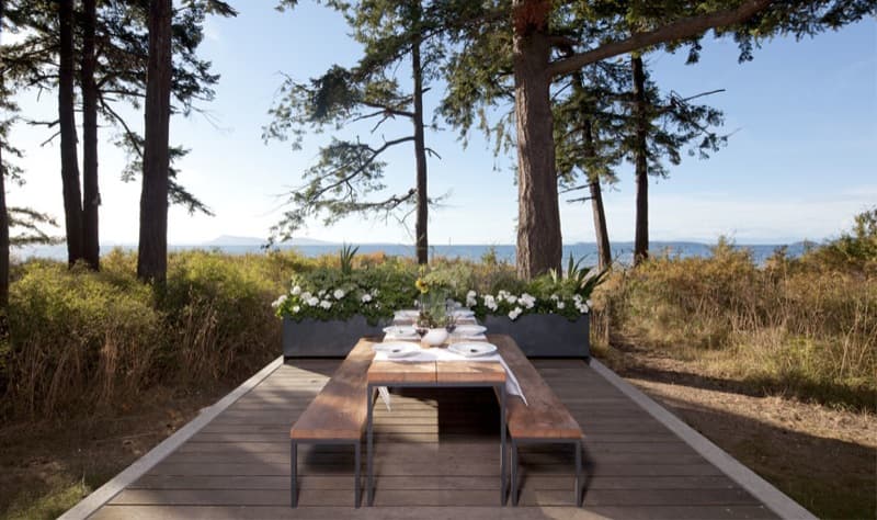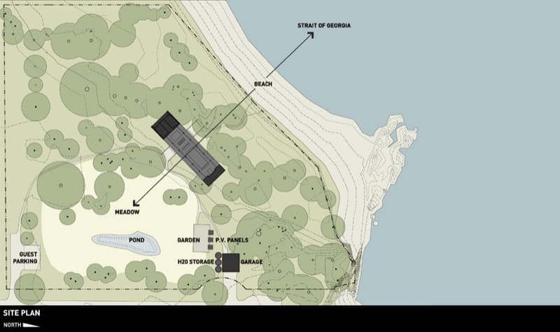 Esta vivienda tan lineal, se ubica en Orcas Island (Washington, EE.UU.). Se construyó para ser ocupada principalmente en épocas estivales. También para que tuviera un bajo mantenimiento, y el menor impacto medio ambiental posible. El edificio es conocido como North Beach, y está colocado en una ligera ladera, entre la playa y la línea de abetos. Forma un volumen sencillo y de aspecto simétrico. Tiene las fachadas principales muy acristaladas.