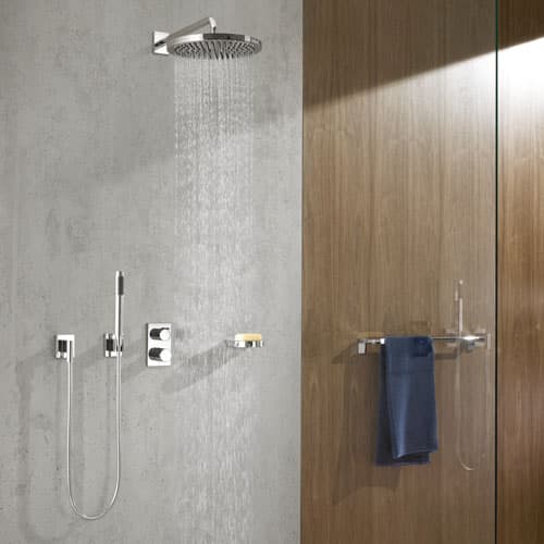 La grifería para baño IMO (In My Opinion) es una combinación de elementos que producen un diseño híbrido. Tiene un cuerpo redondo, con una palanca y caño en forma rectangular. Esto crea un efecto estético capaz de compaginar casi con cualquier estilo de cuarto de baño contemporáneo. Con el diseño de IMO se ha creado toda una serie de grifos para el lavabo, bidé, bañera y ducha. Hay versiones tanto murales como de encimera. Existe versión para ducha con termostato empotrado, y modelos de monomando automáticos para lavabo. El acabado es cromado en todos ellos.