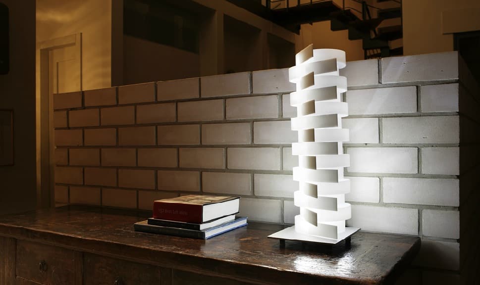 Éste es otro modelo de lámpara-escultura de la firma Nistor&Nistor. Son los mismos diseñadores que hicieron la maravillosa lámpara Magna. La idea es similar, solo que en esta ocasión se trata de una lámpara más pequeña. Por su tamaño resulta ideal para poner sobre una mesa del salón, un aparador, o en el dormitorio. Con la lámpara OPUS se tienen muchas lámparas en una. Basta girar cada una de las piezas que están enlazadas en un eje vertical, para tener una ‘escultura luminosa’ diferente.