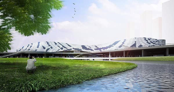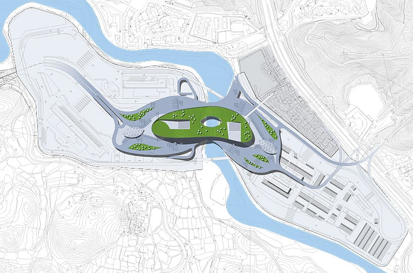 Este proyecto participó en el concurso internacional para una terminal de pasajeros en Hong Kong. Lo más llamativo de esta idea es el puente que crea el edificio sobre el río Shénzhen. Su estructura une los límites de la ciudad con China continental, tanto de forma peatonal como rodada. Además crea un volumen de límites curvilíneos en el centro del proyecto.