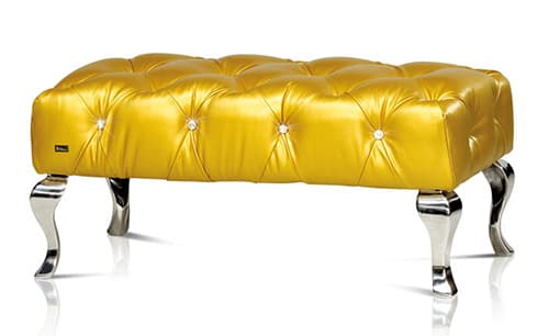 En esta colección tan desenfadada encontramos un sillón giratorio, un sofá, y un par de modelos de taburetes. Las patas tienen un diseño barroco, y son metálicas. Si nos fijamos bien, descubriremos que en cada uno de los botones de su acolchado hay cristales de Swarovski. Definitivamente estamos ante una apuesta lanzada al lujo y el glamour.