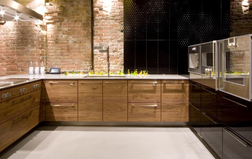 El autor no ha compartido el plano de distribución del apartamento. En cambio sí que hay fotos de todos los rincones de esta rehabilitación tan interesante. Aquí se combina un mobiliario moderno con una decoración donde las paredes tienen un gran protagonismo. El ladrillo y hormigón visto potencian la idea. El piso es de hormigón pulido y en las paredes encontramos algunos revestimientos modernos muy variados. Hay puertas de armarios vidriadas; y un mueble alto en el baño con todo el frontal de espejo. Pero la estrella es la cocina: una brillante combinación entre lo antiguo y lo tecnológico. En algunas fotos se observa una alargada cubitera que quita el hipo.