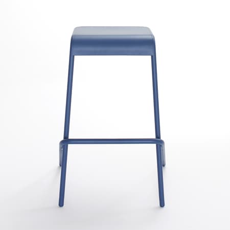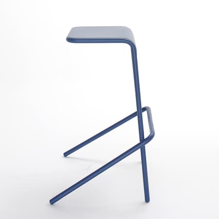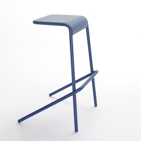 Los mejores diseños de muebles suelen ser los que menos elementos tienen, como este taburete llamado Alodia. Está resuelto con tan solo 3 partes curvadas: dos tubos y una chapa de acero. Su mérito consiste en el equilibrio entre inclinación, dimensión, el punto donde poner las soldaduras; y los remates finales de goma en los extremos (apoyos).