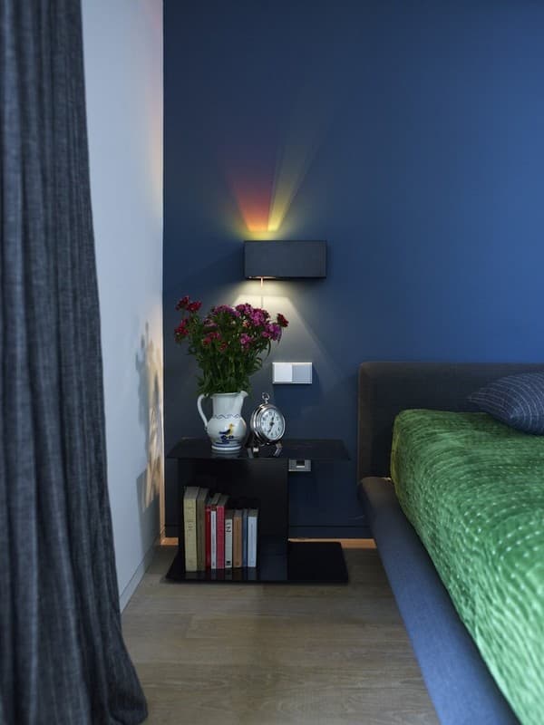 - El diálogo entre los colores de las paredes con el mobiliario, alternando colores claros y oscuros.