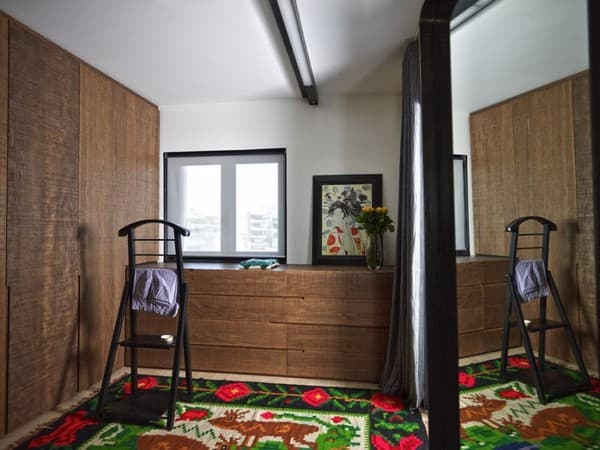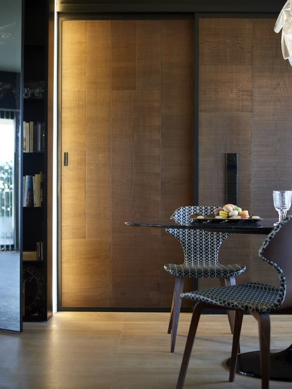 - La madera vieja de roble se ha utilizado para la puerta corredera de acceso al dormitorio, y para las puertas de su armario.