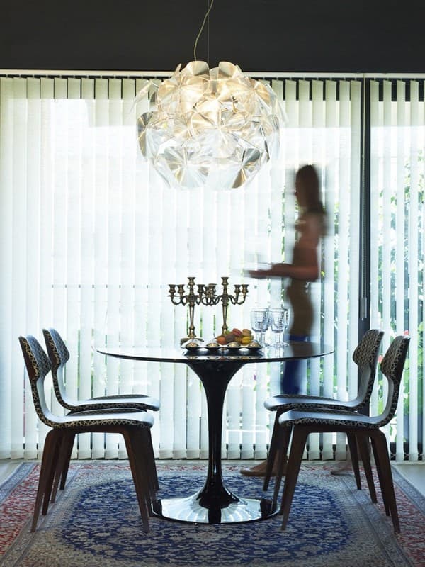 Resultó bastante entretenido identificar algunas de la piezas que forman el mobiliario de este apartamento (mesas, lámparas, taburete…). Encontramos detalles en su decoración que merecen ser destacados:
