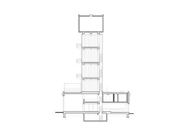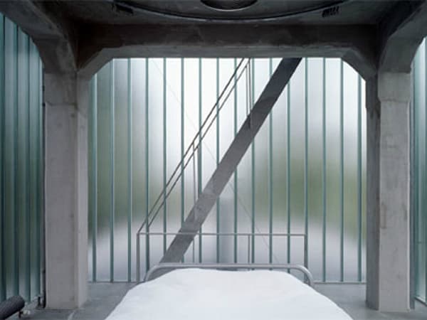 A la estructura de la torre se le añadió en planta baja una ‘caja de hormigón’ de 6 metros de altura que sirve como salón, cocina y comedor. Por encima quedan cuatro pisos cerrados con paneles de vidrio translúcido, y comunicados por una escalera de fuerte pendiente. Esto hace que el interior de cada uno de sus habitaciones (dormitorio, estudio, cuarto de invitados, e invernadero) tenga muchísima luz natural. Pero guardando la privacidad justa para que desde la calle no se distinga con claridad lo que ocurre dentro.