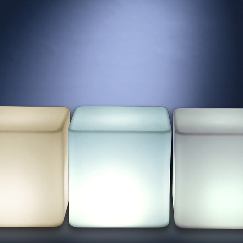 Ésta no será la primera -ni la última- vez que analicemos un mueble con iluminación interior. Parece que la tecnología LED no solo va a cambiar el alumbrado de nuestras casas, también está dispuesta a hacerse con parte del mobiliario. ¿Por qué tener una mesita de noche y una lampara, pudiendo tener ambas cosa a la vez? Eso se preguntaron en Rotoluxe, la firma que creó esta mesa auxiliar cúbica con iluminación interior, llamada KVAD. Es del mismo fabricante que hizo aquellos maceteros con LED que tanto nos gustaron. Gracias al material translúcido (polietileno rotomoldeado) es posible esta práctica combinación. También puede tener sugerentes aplicaciones en otras zonas de la casa, oficina, comercio…