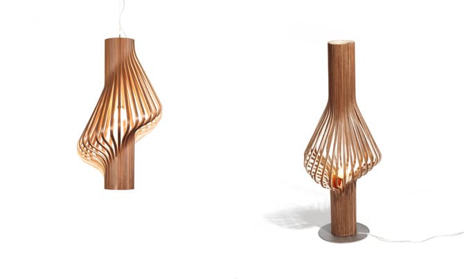 Esta forma de crear una lámpara no es nueva. El modelo Secto 4200 es otro diseño escandinavo hecho siguiendo un esquema parecido de disponer delgadas tiras de madera. Hay que tener en cuenta que dadas sus dimensiones (120cm para el modelo de suelo, y 80cm de altura para la colgante), es una lámpara que recomendamos poner en espacios amplios. Puede verse espectacular en el gran salón de una casa, o en locales comerciales.