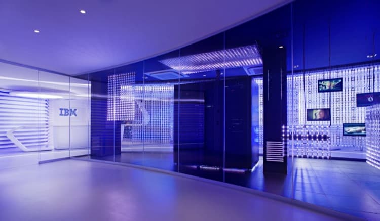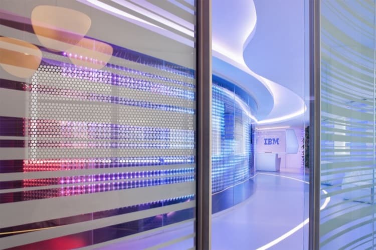 Este proyecto corresponde al Centro de Información Ejecutiva que IBM tiene en Roma. Es una reforma de sus oficinas que implicó también una importante ampliación. El punto de partida en la decoración son las propias franjas del logotipo de la empresa. También se añadieron una gran variedad de elementos que siguen formas curvas, y que contienen avanzadas tecnologías. El resultado final es un ambiente que va más allá de la modernidad, conduciendo inequívocamente al futuro.