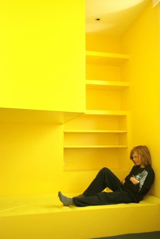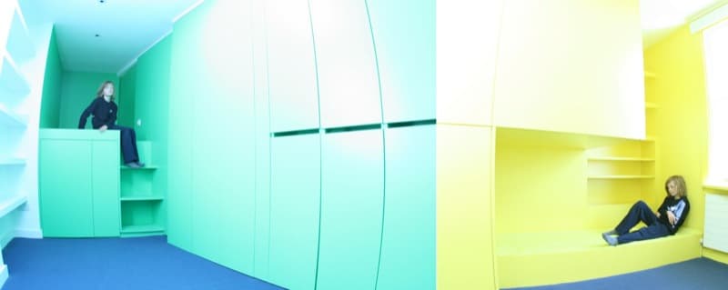 En un espacio rectangular con acceso por un lado, y ventana en el opuesto, todos los intentos de dibujar dos dormitorios son inútiles. Para afrontar ese reto hay que recurrir a soluciones poco convencionales. Eso se hizo en la remodelación de un edificio antiguo de Londres. Había que encajar 2 dormitorios para los hijos del propietario, pero al arquitecto se le ocurrió una solución muy peculiar.