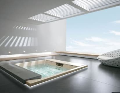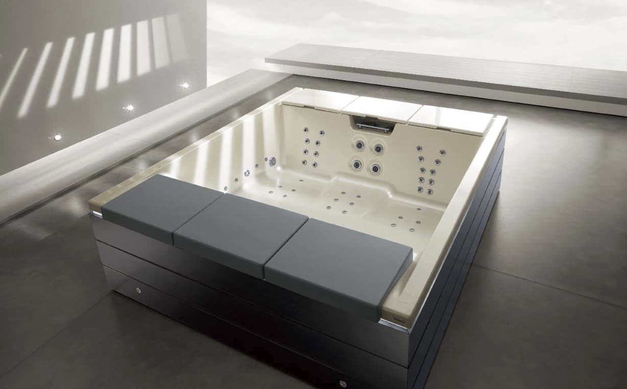 También conocida como Hydrospa Seaside, esta bañera de hidromasaje es muy silenciosa. Gracias a la iluminación incorporada, se puede disfrutar incluso de noche. Tiene capacidad para cuatro personas sentadas, aunque como mejor se disfruta es tumbado en su chaise longue y así tener una inmersión completa. Gracias a unos sistemas de filtrado y calentamiento, el agua siempre estará limpia y a la temperatura adecuada. Por si esto fuera poco, la minipiscina SEASIDE cuenta con compartimento refrigerado para mantener las bebidas frías.