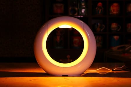 Esta lámpara se puede poner en cualquier sitio de la casa, bastará con encontrar una pequeña superficie de apoyo para colocarla. Es de muy bajo consumo (9 vatios), y está pensada para durar unas 50.000 horas. Trae incorporada una tecnología de matriz densa de LEDs (Dense Matrix LED™) que produce una luz de alta calidad, pudiendo cambiar de intensidad y color.