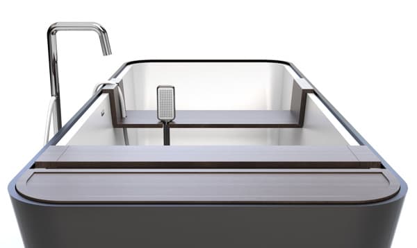 La bañera Bathe es un modelo exitoso. Fue galardonada con el ‘Bathroom Innovation Award 2011‘ en la categoría profesional. Es meritoria la variedad de soportes y espacio de almacenamiento de esta bañera. Pero analizando con detenimiento las imágenes con sus posibles combinaciones, algo flaquea. Falla precisamente en su cometido principal: hacer del baño una experiencia cómoda y relajante.