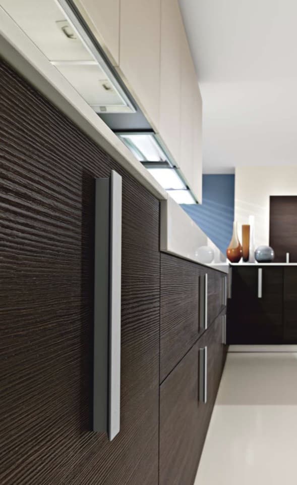 Estos muebles combinan la innovación con el uso tradicional de la cocina. Aportan soluciones compositivas bastante lógicas y fáciles de encajar en los espacios contemporáneos. El aspecto de la colección italiana MAGIKA es absolutamente lineal, con tiradores verticales en puertas de armarios y cajones. Eso es algo que llama bastante la atención, aunque es posible elegirlos con otro sistema que no lo tenga.