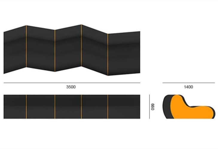 Este sofá entra dentro de esa categoría de diseños atípicos, aportando una solución diferente a la convencional. Su trazado en zigzag así lo demuestra. Y es que está formado por diferentes módulos, ninguno de ellos con brazos. Aquí la idea es la de poder componer un mueble lineal para estar cómodo, en una postura bastante echada. Por eso su respaldo no es muy alto. Ya sea para el salón de una casa, o para unas instalaciones de oficina, hotel…, el sofá BLOB es una opción a tener en cuenta. Está disponible en diez colores diferentes con tapizado textil, siendo precisamente el combinado de color una de las cualidades más llamativas de su diseño.