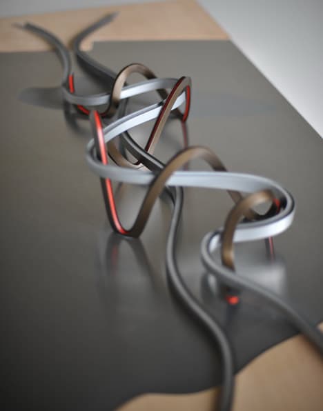 Esta filigrana es en realidad el proyecto de un puente nacido de un concurso de ideas para la ciudad china de Hangzhou. Su longitud de 500 metros salva las aguas del lago Jinsha. Es una idea que se aleja completamente de la solución convencional de tablero recto colgado o apoyado de una estructura. En este ejemplo el puente está resuelto con una originalidad aplastante, pues crea tres elementos longitudinales metálicos de trazado curvilíneo.