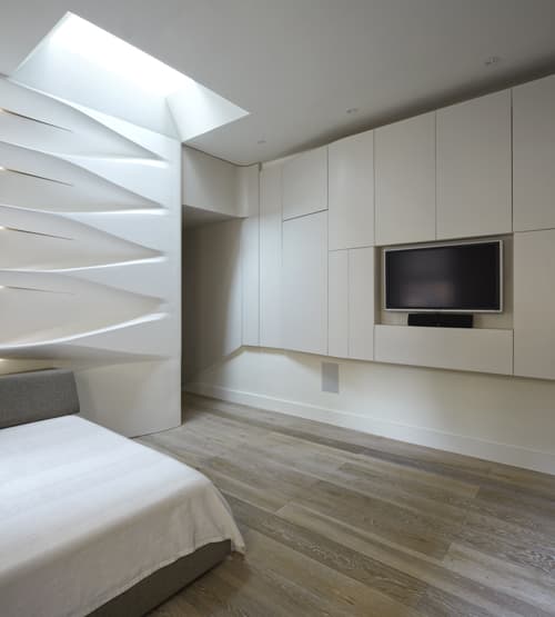 Estas interesantes fotografías tienen como protagonista el pavimento. Se trata de una tarima flotante de madera que viene con certificación sostenible FSC y con imprimación de cera ecológica. Este suelo está comercializado por la firma europea Duchâteau, de la que podemos elegir entre ocho colecciones diferentes. Hay texturas diferentes donde elegir, ya sea para espacios más clásicos o modernos.