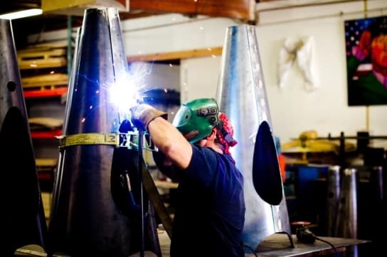 Esta espectacular chimenea de acero fue diseñada por Brandon Williams. Imágenes de Design Public.