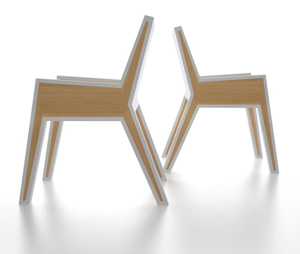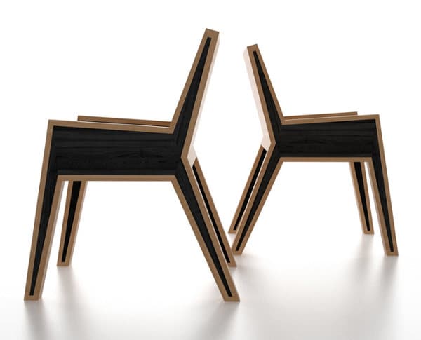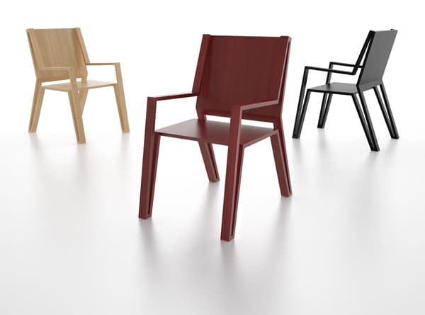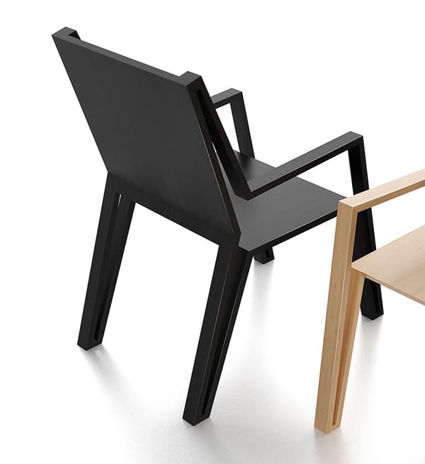 Según la imagen superior, es verdad que la Silla Outline tiene un aspecto frágil y delicado. Por eso existe una versión en la que se rellenó el espacio entre esas dos líneas, añadiendo de paso una nota de color al conjunto. Este concepto tiene prevista su ejecución empleando madera maciza.
