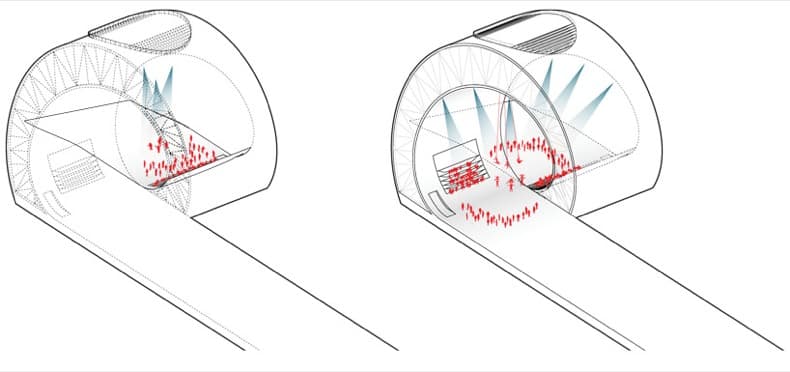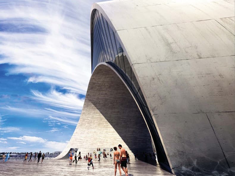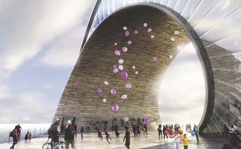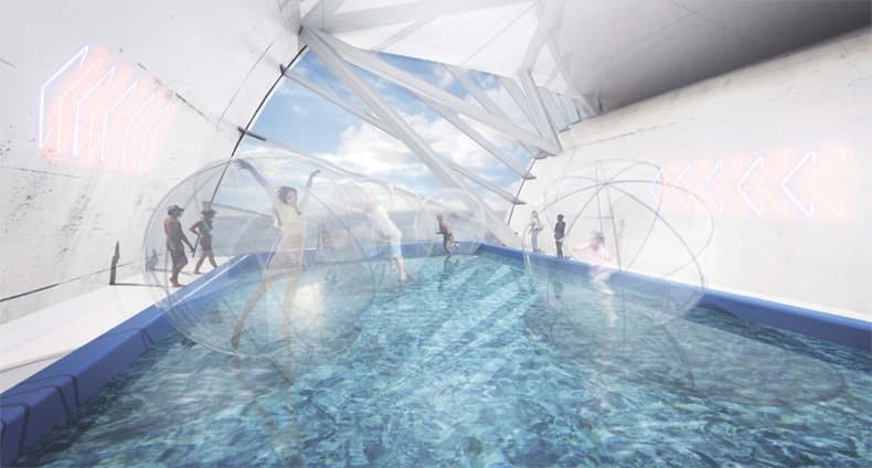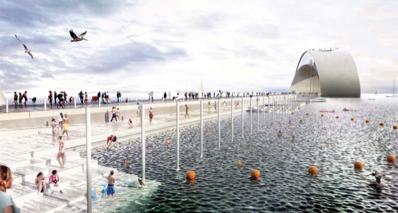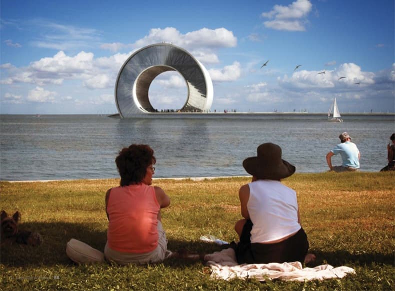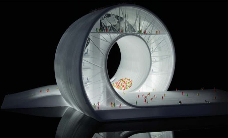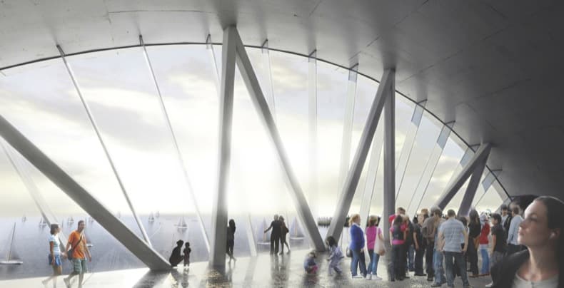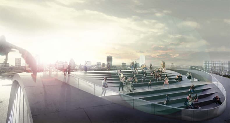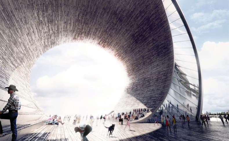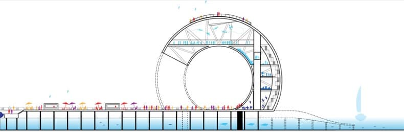 El objetivo principal del concurso era sustituir un importante hito urbano, para darle una nueva dimensión e identidad. Pero debía ser práctico, sostenible, y ajustarse a un presupuesto de 45 millones de dólares. La propuesta de BIG no puede estar más acorde a lo que nos tiene acostumbrados, diferenciando tres zonas en su proyecto (el afluente + el paseo + la ola), y concretándolo con un gigante rizo final, que es desde luego la parte más llamativa.
