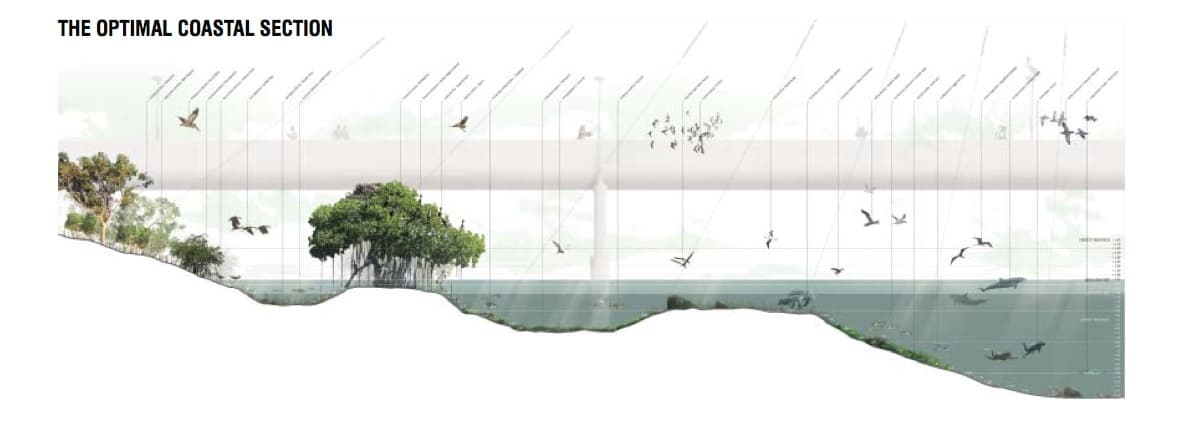 Es una propuesta que pone mucho énfasis en recuperar el esplendor ecológico (flora y fauna) de la Bahía de Tampa. Esto se nota bastante por la cantidad de ilustraciones y esquemas que fueron añadidas al documento que defendía la idea. Pero el equipo de West 8 también planteó el proyecto para el St. Petersburg People’s Pier como una actuación que debía ir más allá de una renovación del muelle existente. Por eso hablan de ‘plantar las semillas’ para un futuro más ambicioso, de impulsar un renacimiento del paseo marítimo, algo que sin duda beneficiaría bastante a la ciudad.