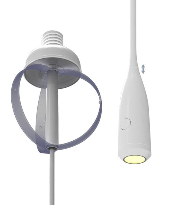 - El cuerpo que aloja la lámpara LED se puede desprender del resto, con lo que también tenemos una lámpara portátil.