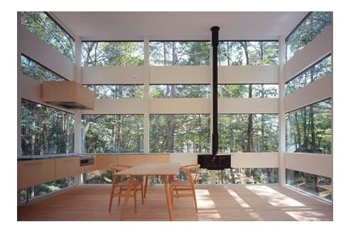 Esta vivienda tiene la apariencia de una caja de cristal, una pequeña torre perdida en un bosque de la ciudad de Karuizawa (a 185km de Tokio). Es conocida por Ring House, y está ubicada en una depresión, donde las únicas vistas son hacia los árboles que la rodean. Se construyó para servir como casa de vacaciones.