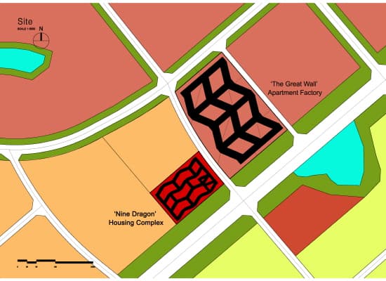 Estos renders son de un gran urbanización conocida como Nine Dragons Housing Complex (NDHC) que se tiene previsto construir en la ciudad china de Suizhong, junto a otra actuación (Apt-factory) llevada a cabo por la misma oficina de arquitectura.