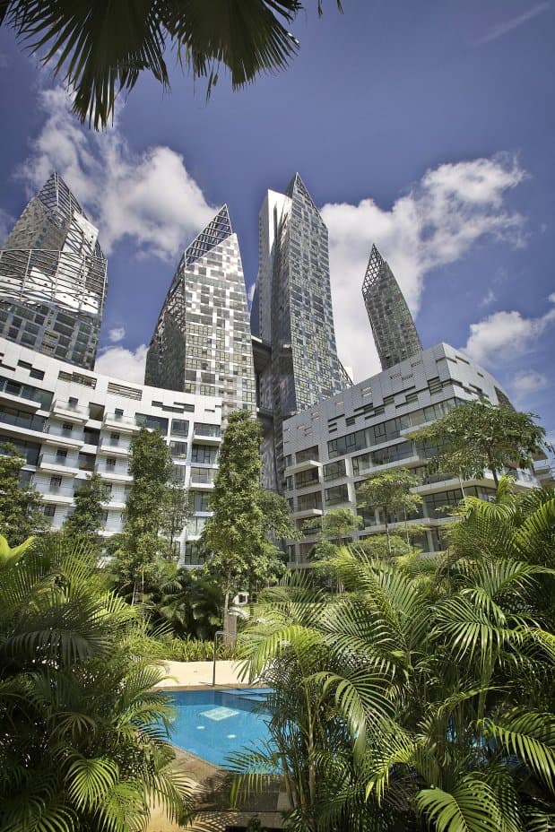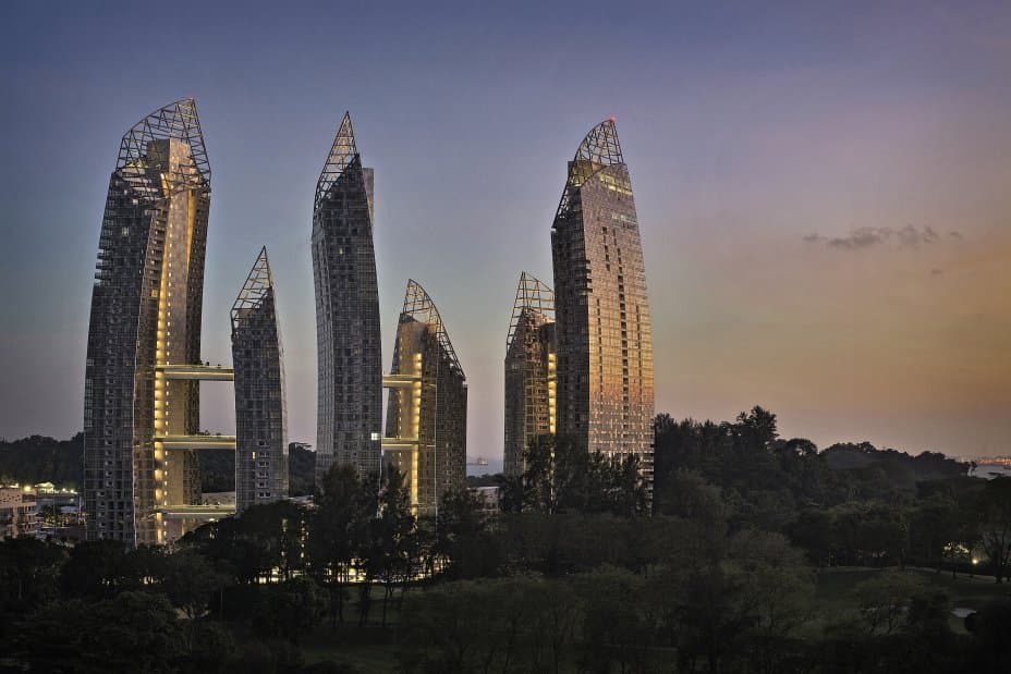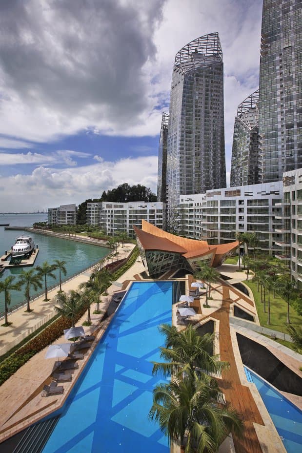 Reflections at Keppel Bay es un complejo residencial formado por varios edificios en altura. Está situado en la entrada del antiguo puerto de Singapur, con una superficie de casi 186.000m2. El conjunto está formado por 6 rascacielos (desde 24 a 41 pisos), con la particularidad de que presentan un trazado curvo en su altura. También hay 11 construcciones más bajas de apartamentos (de 6 a 8 plantas).