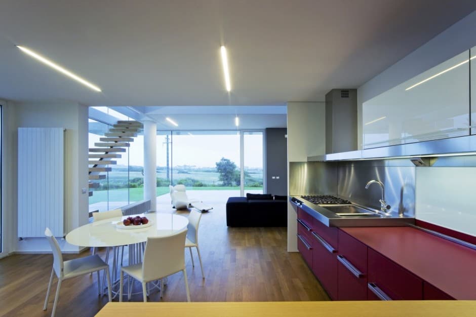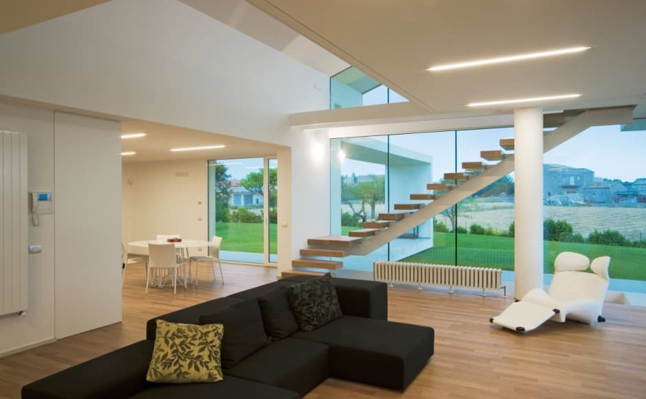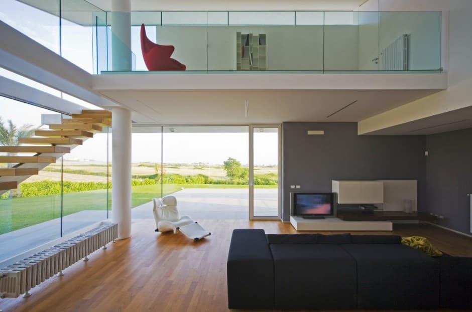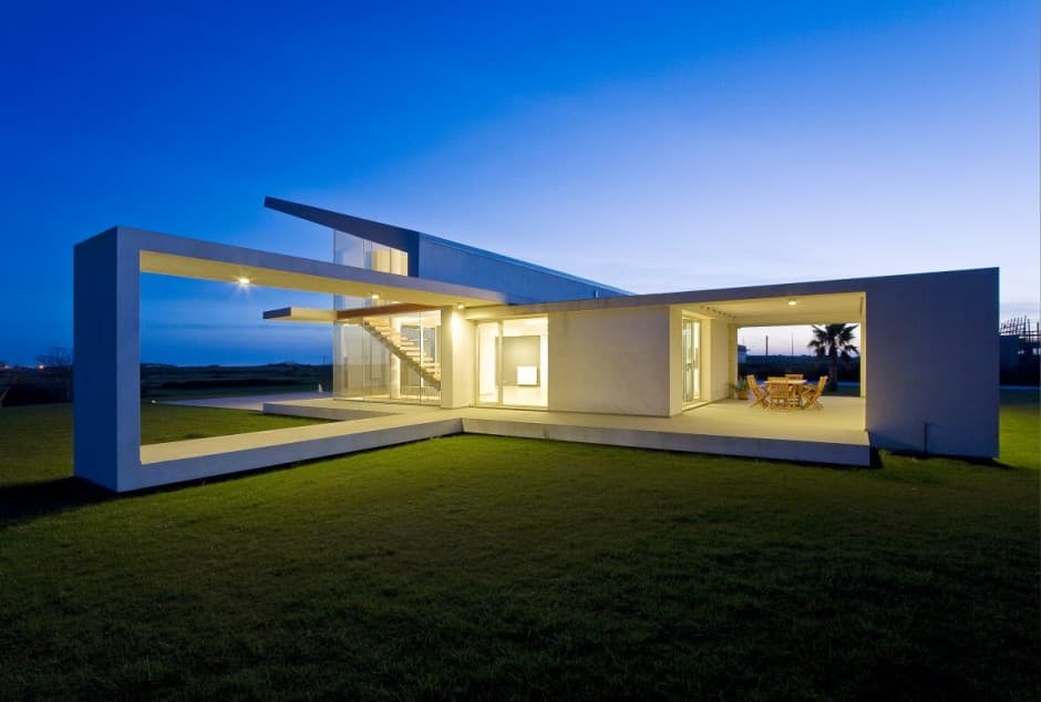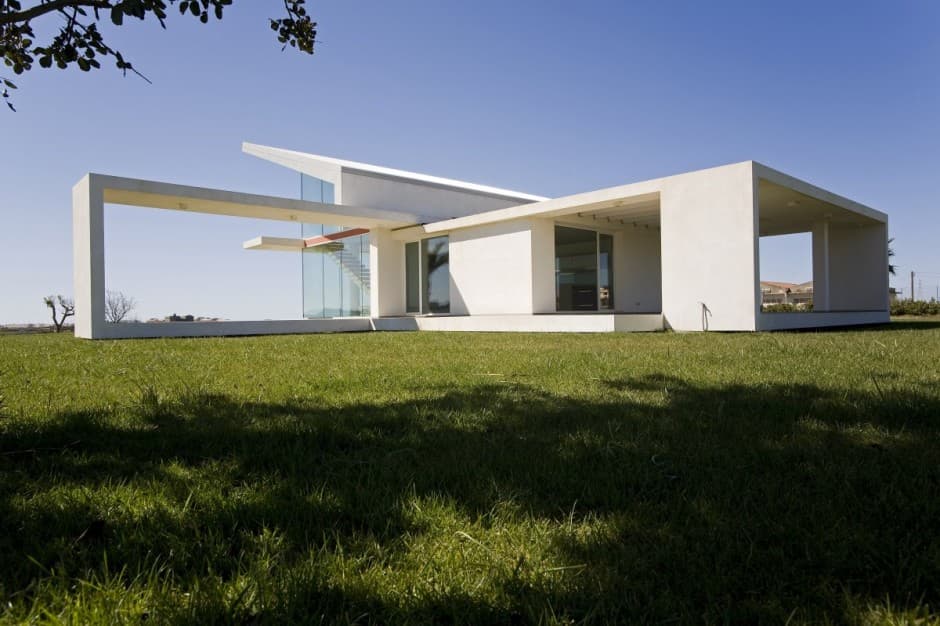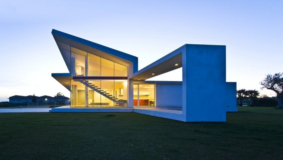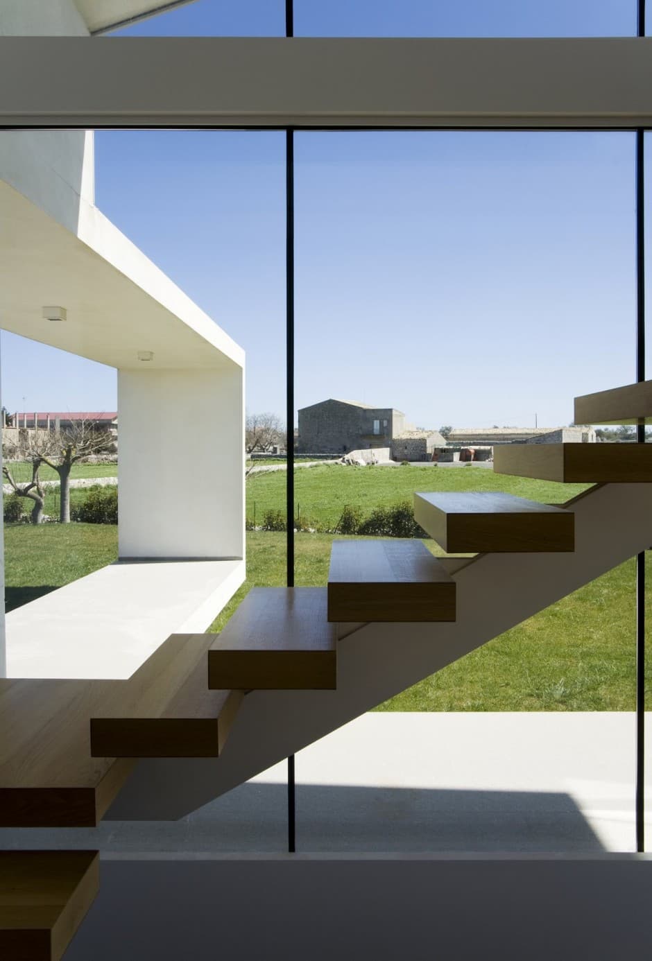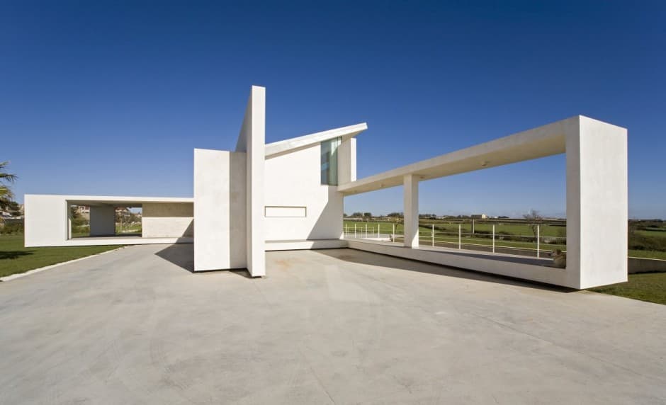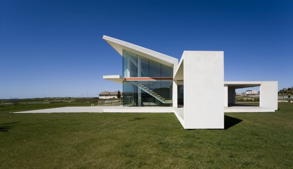 Ubicada en un área despejada de las afueras de Ragusa (Sicilia, Italia), esta vivienda unifamiliar de 4 dormitorios se convierte en un moderno objeto completamente asimétrico, creando unos alzados muy variados, con unos pórticos que enmarcan el paisaje desde diferentes direcciones, alternando muros ciegos con grandes superficies acristaladas.