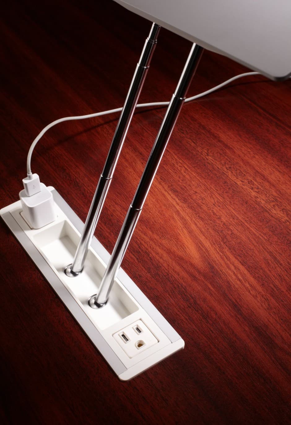 Levity: lámpara y enchufes en el escritorio