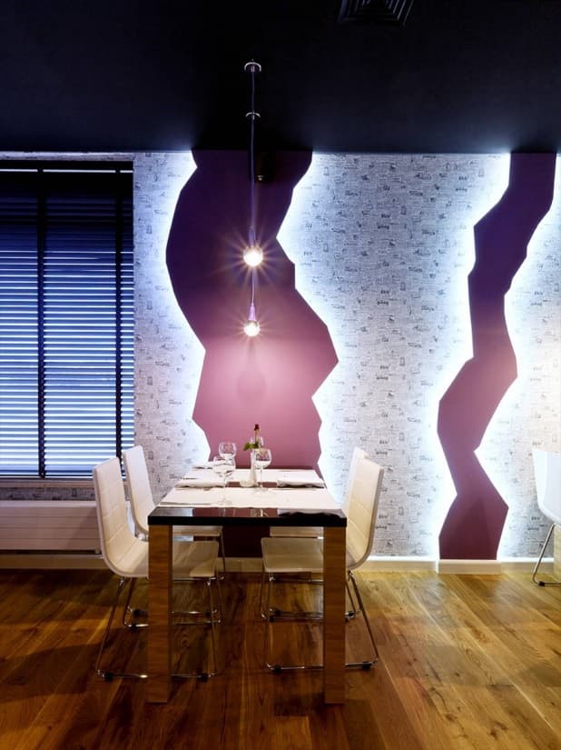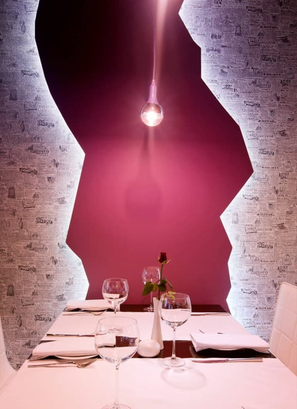 Tomando el papel de periódico como motivo principal, todo el diseño de este restaurante (incluido su nombre) gira entorno a él. Se llama Hot Paper, está en la ciudad polaca de Tczew, y casi todas sus paredes están compuestas por dos planos, de tal manera que el más profundo está decorado con un papel pintado que simula el papel de periódico (*), mientras que el otro se presenta ‘recortado’.