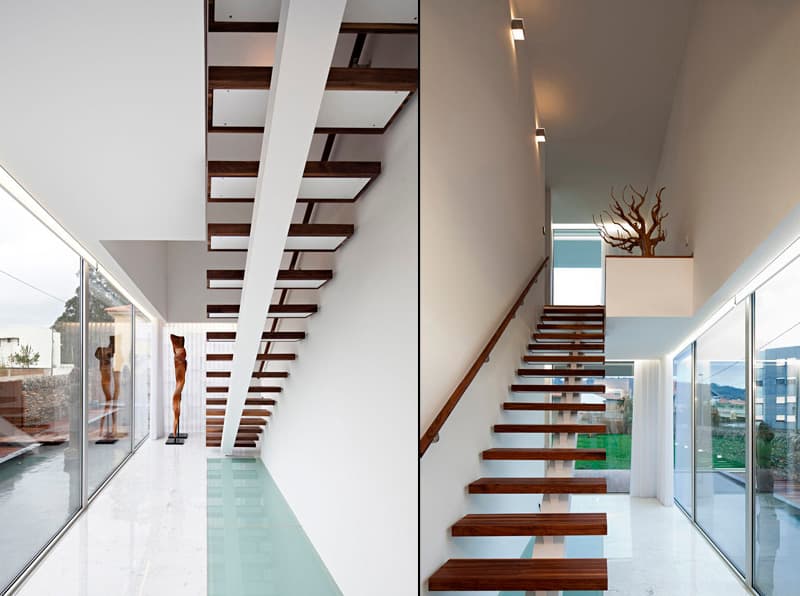 En la Casa Valongo es inevitable hablar de las zonas de paso, ya que tienen un tratamiento especial, son amplios y luminosos distribuidores, algunos de ellos delimitados por amplias puertas, y otros por unos muros. En líneas generales, se trata de un proyecto muy generoso con las dimensiones, pero aunque carece de lujos y excesos en sus acabados, la casa se percibe como un palacio doméstico contemporáneo.