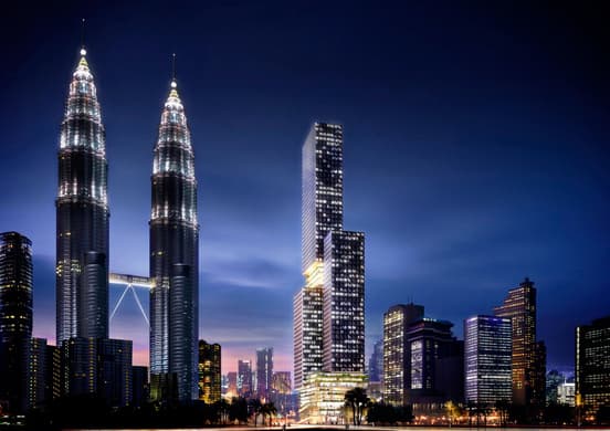 Este rascacielos está diseñado siguiendo una de las tendencias arquitectónicas contemporáneas, la de hacer parecer inestables las estructuras, en esta ocasión con unos sencillos volúmenes dispuestos como si se tratara de piezas de un tetris mal encajado. Es la Torre Angkasa Raya, a construir próximamente en el centro de Kuala Lumpur (Malasia), tendrá una superficie construida de 165.000m2, repartida en 65 pisos, y una altura total de 268 metros, bastante menos que los rascacielos vecinos de las Torres Petronas (452m), situados justo enfrente.