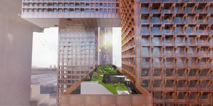 Cross # Towers son una original idea de edificio en altura, mucho más acertada que las criticadas torres The Cloud de MVRDV, las cuales precisamente estarán colindantes, como se puede ver en la siguiente panorámica de la zona.