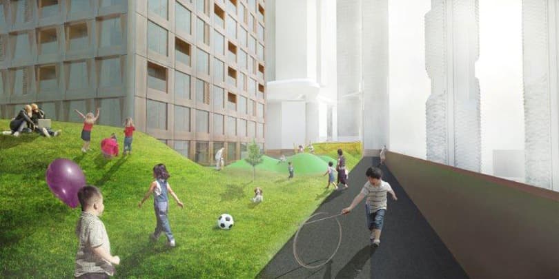 Siguiendo con la simpleza descarada a la hora de plantear sus proyectos, los arquitectos de BIG propusieron un complejo residencial que formará en el horizonte de Seúl una gran «#», a modo de puerta de entrada al distrito internacional de negocios Yongsan. Se trata de dos torres, de 214 y 204 metros, que cumplen con los requisitos máximos de altura, pero con la particularidad de que están conectadas por dos edificios horizontales que hacen de puente, en la cota de 70m y en la de 140m.