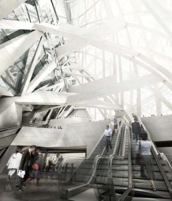 Esta Torre Faro es un edificio de 300 metros con un diseño que se aleja del concepto tradicional de rascacielos, pues se levanta como un trípode: un apoyo es estructural y los otros dos están ocupados. Además acoge un pabellón en su base que funciona como una plaza pública, dejando un gran espacio vacío de 28 metros de altura, creando una monumental puerta urbana para el tránsito peatonal que fluye por debajo del edificio. A partir de ese gran vestíbulo, la torre se vuelve más delgada, para rematarse como si no estuviera acabada.