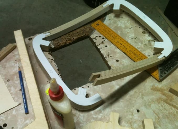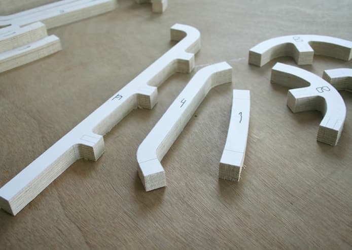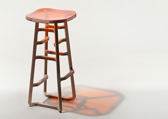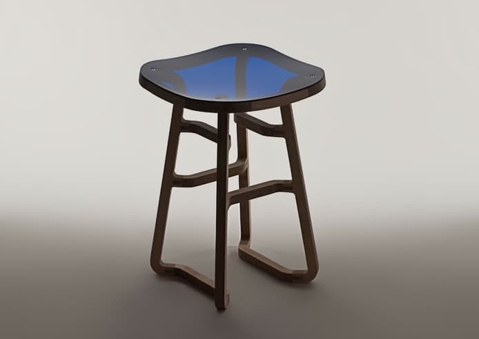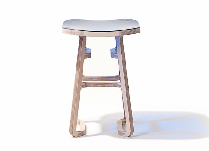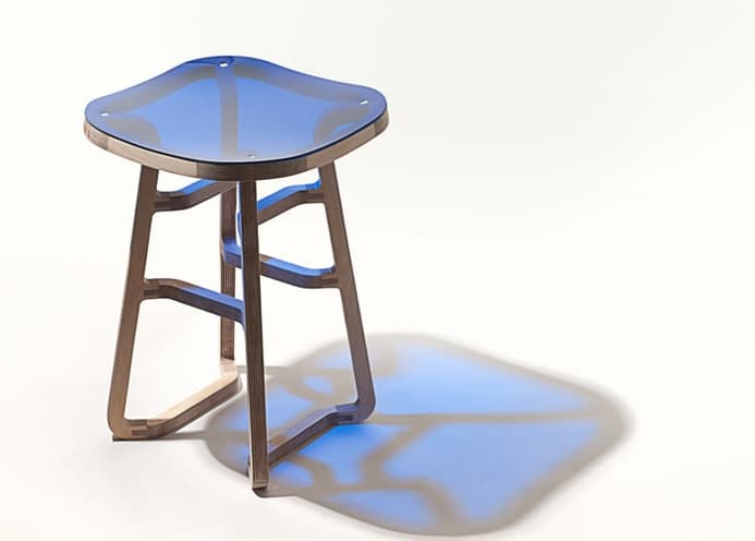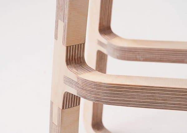 La parte más interesante del diseño de este moderno taburete, llamado Woodini, ha consistido en crear su estructura tridimensional, que está compuesta por piezas que han sido recortadas meticulosamente de un panel de madera contrachapada. Todos los perfiles cuadrados van pegados mediante unas uniones muy peculiares, utilizando siempre una pequeña curva.