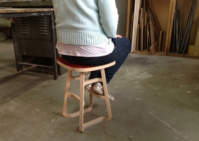 El asiento es la única pieza que va atornillada, aportando colorido y transparencia al mueble, pues está hecho con una lámina de polímero ligeramente doblada. En la versión pequeña de Woodini, el hecho de que el asiento sea cóncavo, no tiene por qué molestar, pero cuando se trata de un taburete alto (ver foto más abajo) ese detalle puede provocar presión en el muslo de ciertas personas.