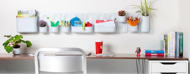 Pero además de servir como mural decorativo, URBIO es también un moderno método para organizar nuestras cosas, es versátil, ya que se puede utilizar para almacenar en la pared cuadernos, lápices, utensilios de cocina, etc… Cada recipiente está hecho con plástico ecológico, y los imanes son de neodimio, con tamaño suficiente para sostener cualquier cosa. Las placas metálicas que se colocan en la pared son modulares, y cada una viene con cuatro huellas sobre las que acoplar los imanes de los botes.