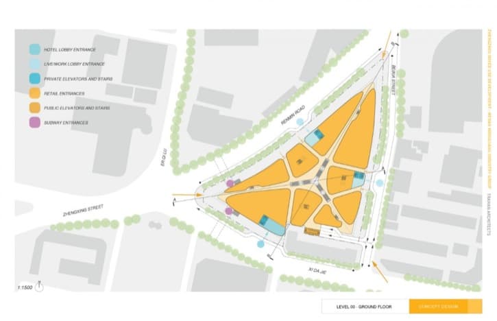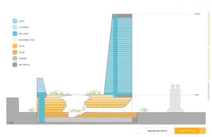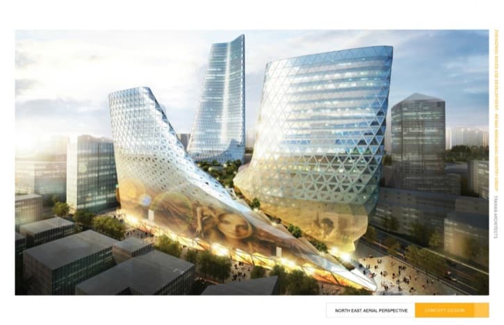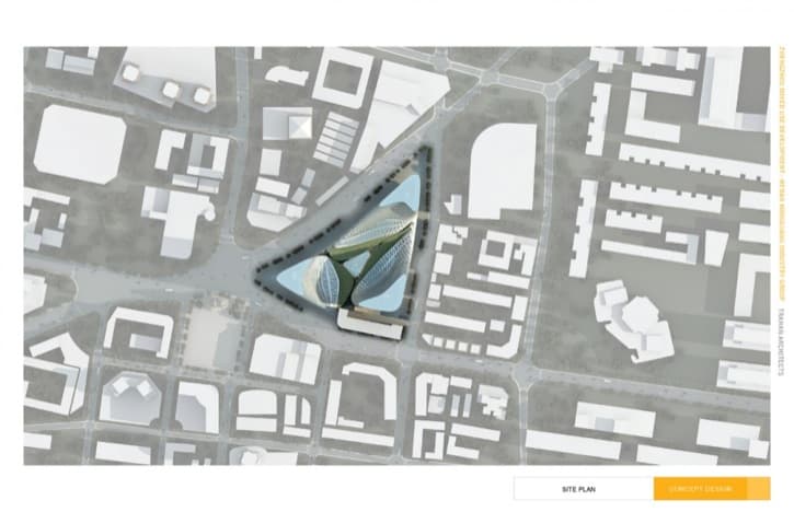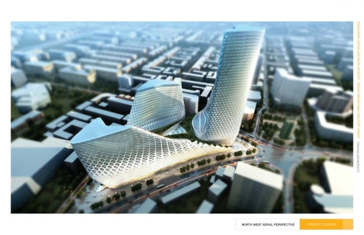 Este proyecto está ubicado en la parte central de la ciudad, que actualmente es una importante zona comercial, situada justo al norte de la estación de ferrocarriles y al sur de un importante Parque. El diseño propuesto combina hoteles con viviendas y oficinas, potenciando las esquinas del sitio, al tiempo que deja los niveles inferiores para el comercio, pero bien conectado con el tejido de la ciudad. Como se puede comprobar en las imágenes, los edificios representados (3 torres) dan al lugar una imagen muy dinámica y moderna.