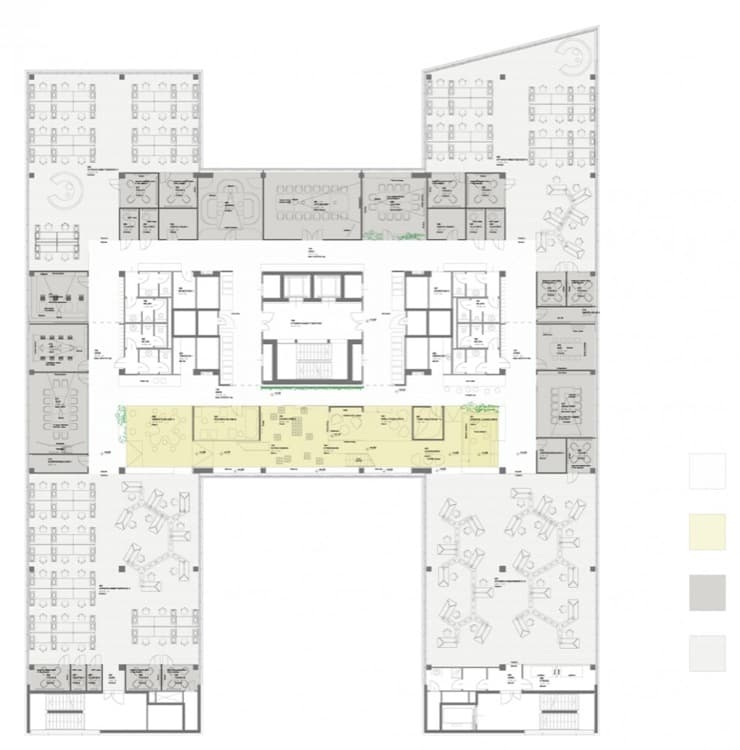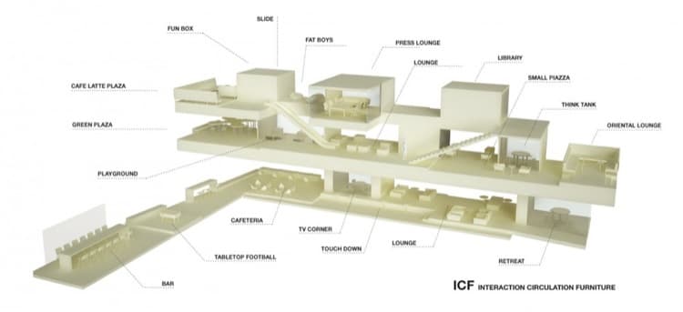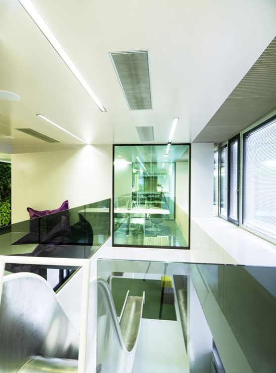 Estas imágenes son de la sede de Microsoft en Viena, un proyecto de arquitectura de interior que salió de un concurso internacional, y que durante su ejecución fue muy controlado por un equipo de dicha compañía. Estos espacios se alejan del concepto convencional de oficina, pero tienen mucho en común con las de otros gigantes tecnológicos, en los que se combinan diferentes ambientes y elementos en la decoración, con el objetivo de fomentar la creatividad de los empleados.