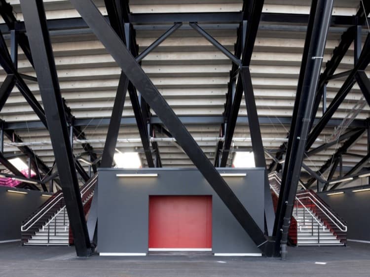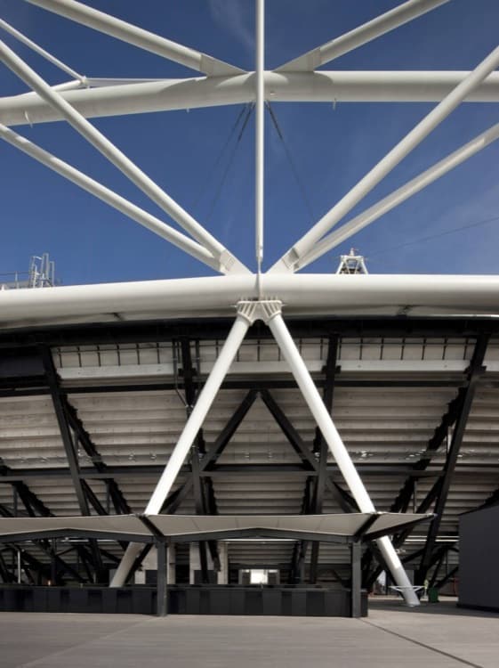 Viendo las fotos del Estadio Olímpico de Londres 2012, es inevitable fijarse en sus 14 torres apoyadas en el perímetro interior de su cubierta. Son las que alojan gran parte del sistema de iluminación para el terreno de juego. Hay que tener en cuenta que se trata de un edificio de carácter permanente, pero que después de los juegos pasa de tener 80.000 a 25.000 asientos. Por ese motivo una parte de su estructura es desmontable.
