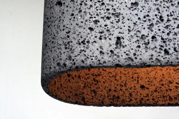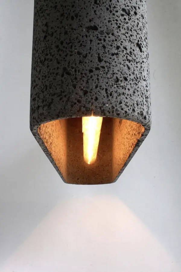 Su elegante forma se ha conseguido a partir de un bloque de lava basáltica. Pero aún así es muy complicado de fabricar, porque es un trabajo que requiere mucha destreza y oficio. Es difícil conseguir que la pantalla de esta maravillosa lámpara sea tan delgada, pues incluso deja pasar la luz por muchos de sus poros. Impresionante!