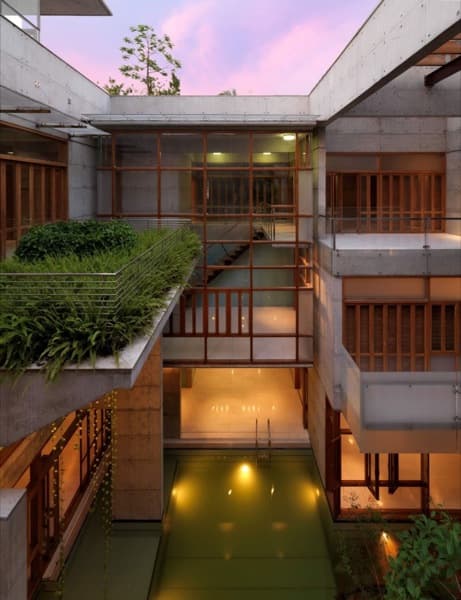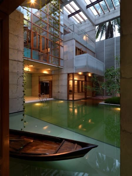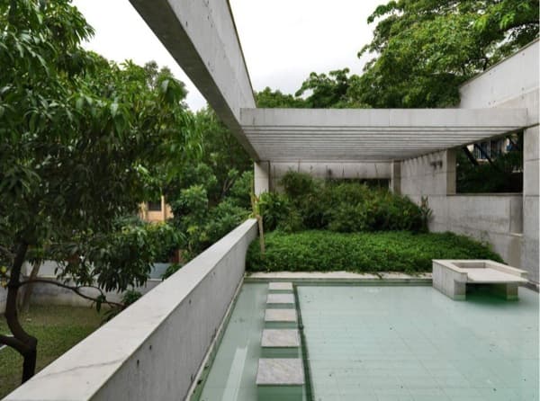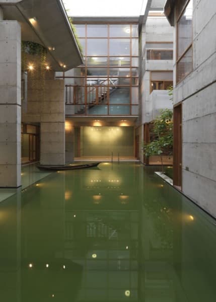Esta vivienda está ubicada en Daca, la capital de Bangladés, aunque en realidad habría que calificarla de mansión ya que tiene una superficie construida de 1.920m2 distribuidos en tres plantas. Cuenta con escalera de servicio independiente, y aunque ‘solo’ tenga 6 dormitorios, encontraremos varios comedores y salones a lo largo y alto de todo el edificio. Pero lo más interesante de la Residencia SA está es los elementos utilizados: hormigón visto, agua, y azoteas ajardinadas.