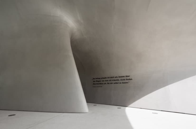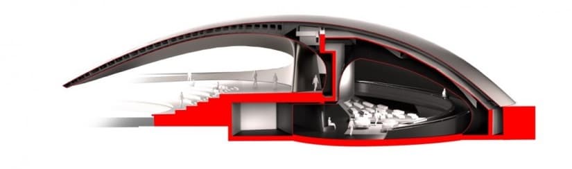 La entrada está justo en el arranque del voladizo, y conduce a un espacio dispuesto para que los visitantes conozcan más sobre estos famosos deportivos. Une tradición e innovación, en una exposición que además se aprovecha de las nuevas tecnologías.